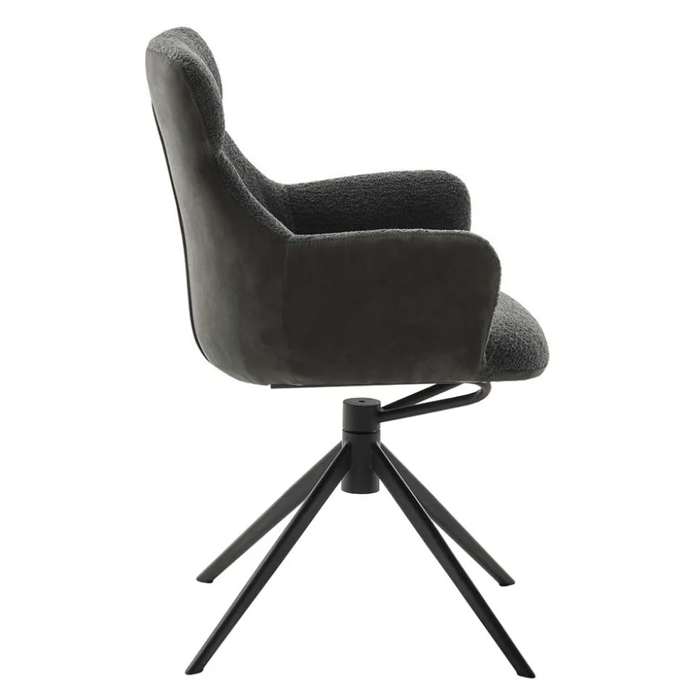 Der drehbare Esszimmersessel „Adhipa“ in Anthrazit kombiniert modernes Design mit hohem Komfort. Das schwarze Metallgestell verleiht ihm eine stilvolle Robustheit, die jedes Esszimmer bereichert.