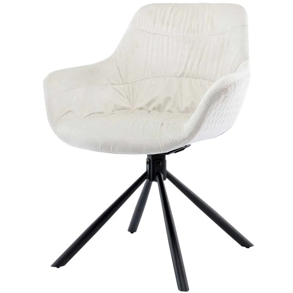 Entdecken Sie die Perfektion in Form und Funktion mit unserem Polsterstuhl „Zerettan“. Eine meisterhafte Komposition aus samtweichem Gewebe und robustem Metall bildet die Basis dieses exquisiten Möbelstücks. Sein modernes Design, gekonnt kombiniert mit der zeitlosen Eleganz eines cremefarbenen Samtbezugs, macht den „Zerettan“ zu einem unverzichtbaren Akzent in Ihrem Ess- oder Wohnbereich. Die feinen, dekorativen Steppungen und der einladende Faltenwurf verleihen ihm eine visuelle Tiefe und eine Textur, die zum Berühren verführt.