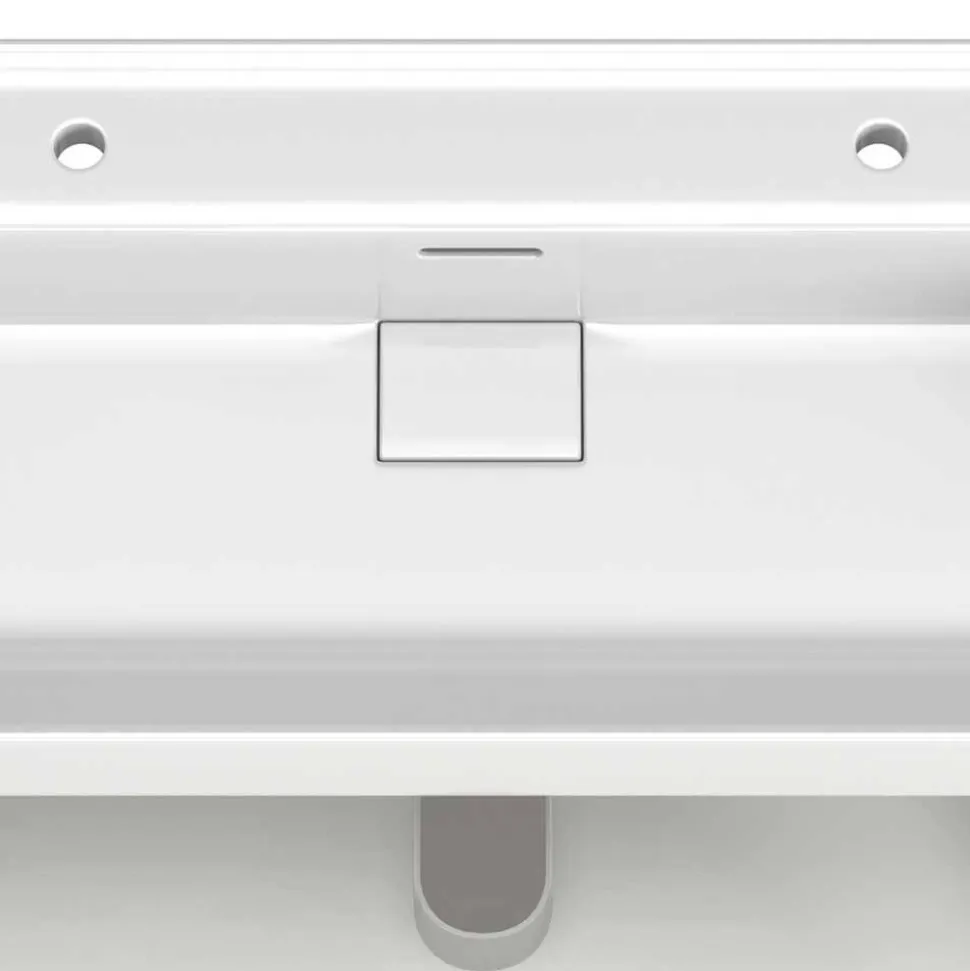 - Einsatzwaschbecken aus Keramik für zwei Armatureninklusive, Maße BxHxT: 99,8×18,5×46,8 cm