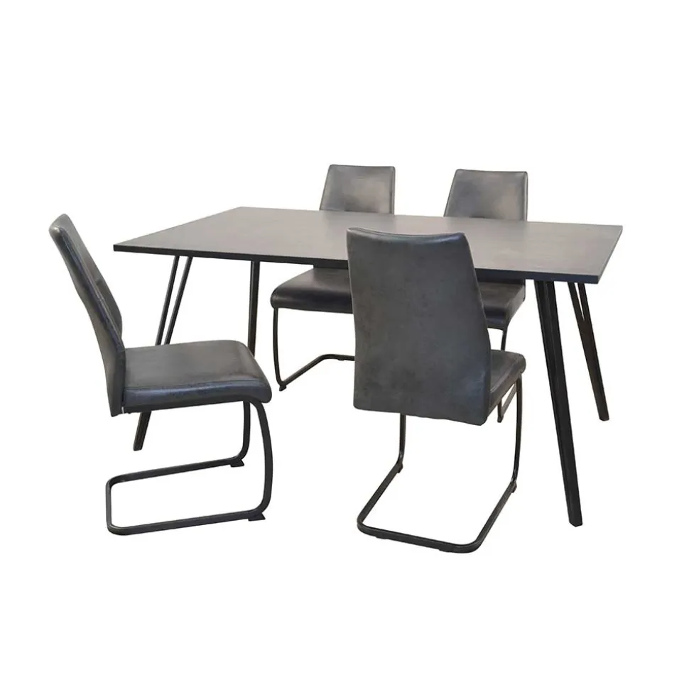 Modernität zeigt sich bei der Sitzgruppe „Basilico“ in einer harmonischen Kombination aus klarer Formensprache, trendbewussten Farben und edlen Oberflächen. Warme braune Holzoptik bei der Tischplatte trifft auf anthrazitfarbene Sitzbezüge in stilvoller Vintage-Optik und wird perfekt ergänzt durch tiefschwarz pulverbeschichtete Metallgestelle. Dieses gekonnte Farbspiel strahlt Behaglichkeit aus und verleiht dem Raum eine moderne, zeitlose Atmosphäre. Der Look fügt sich nahtlos sowohl in minimalistische, industrial-inspirierte als auch in klassische Wohnkonzepte ein.