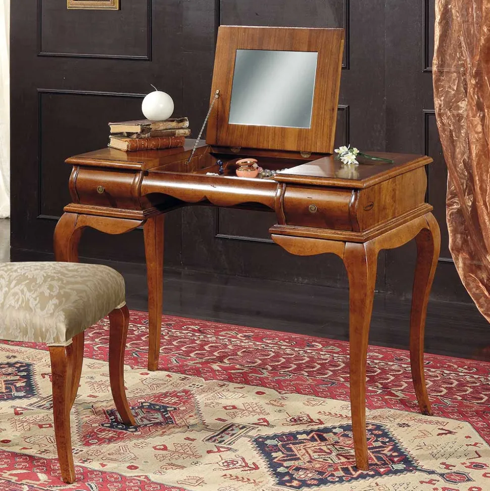 Eleganz und erlesener Geschmack zeichnen den Frisiertisch „Motiz“ aus, eine wahre Bereicherung für jeden stilvollen Schlafbereich. Inspiriert von der Pracht des Barockstils, vereint dieses italienische Qualitätsprodukt handwerkliche Perfektion mit einem Design für den gehobenen Anspruch. Der Barockstil, bekannt für seine opulenten Formen und reiche Verzierungen, verleiht jedem Raum eine königliche Aura.