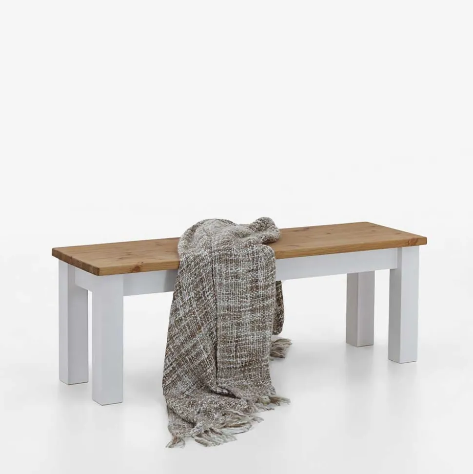 - Harmonische Sitzbank in Weiß und Kiefer laugenfarbig