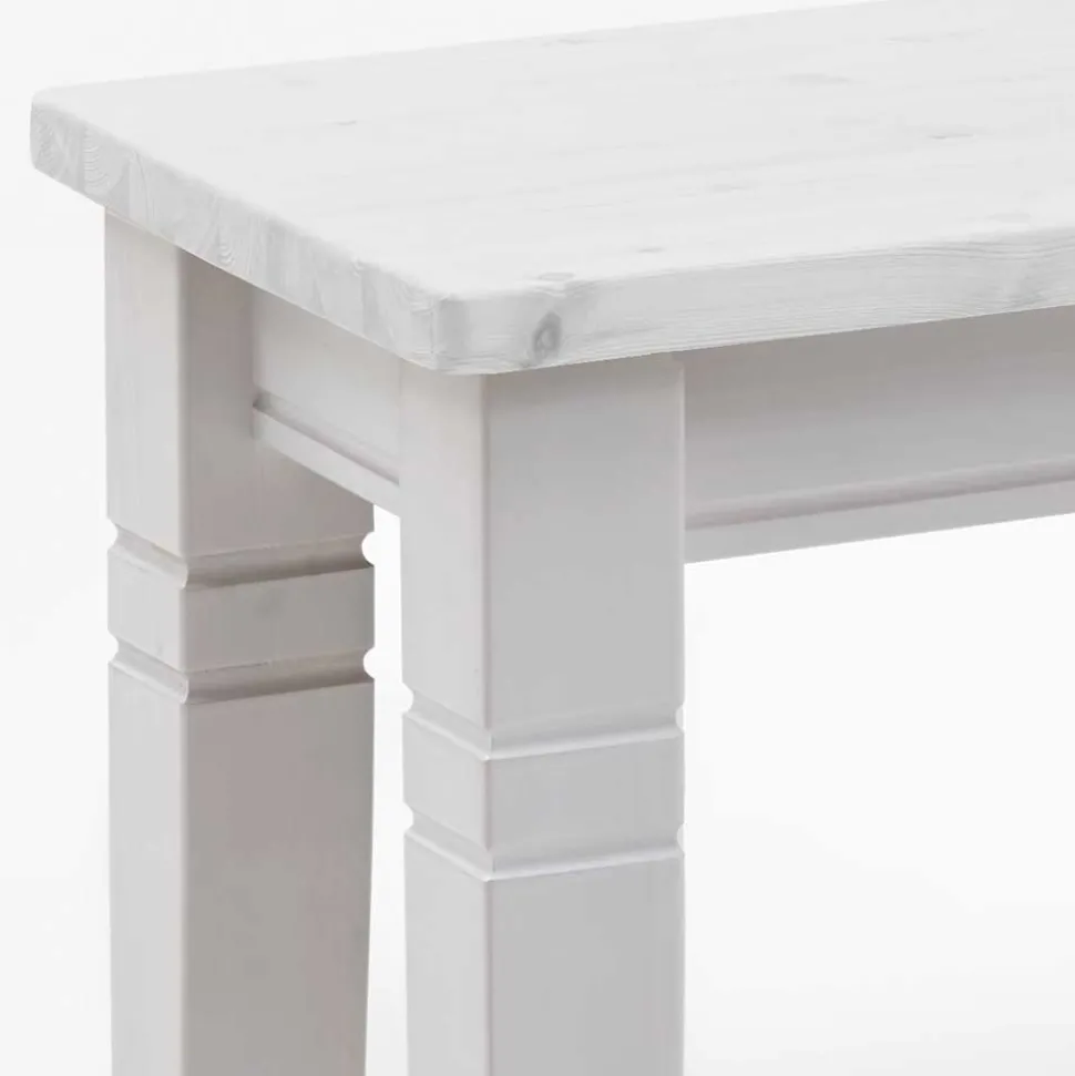 Gefertigt aus massivem Kiefernholz bringt diese Bank nicht nur Stabilität, sondern auch einen Hauch Natur in Ihre vier Wände. Kiefer gehört zu den besonders langlebigen Hölzern, ist pflegeleicht und überzeugt mit einem angenehm warmen Farbton. Die in Weiß lackierte Oberfläche wurde so behandelt, dass die typische Maserung sowie natürliche Äste sichtbar bleiben – das macht jede Essbank zu einem Unikat mit Charakter.