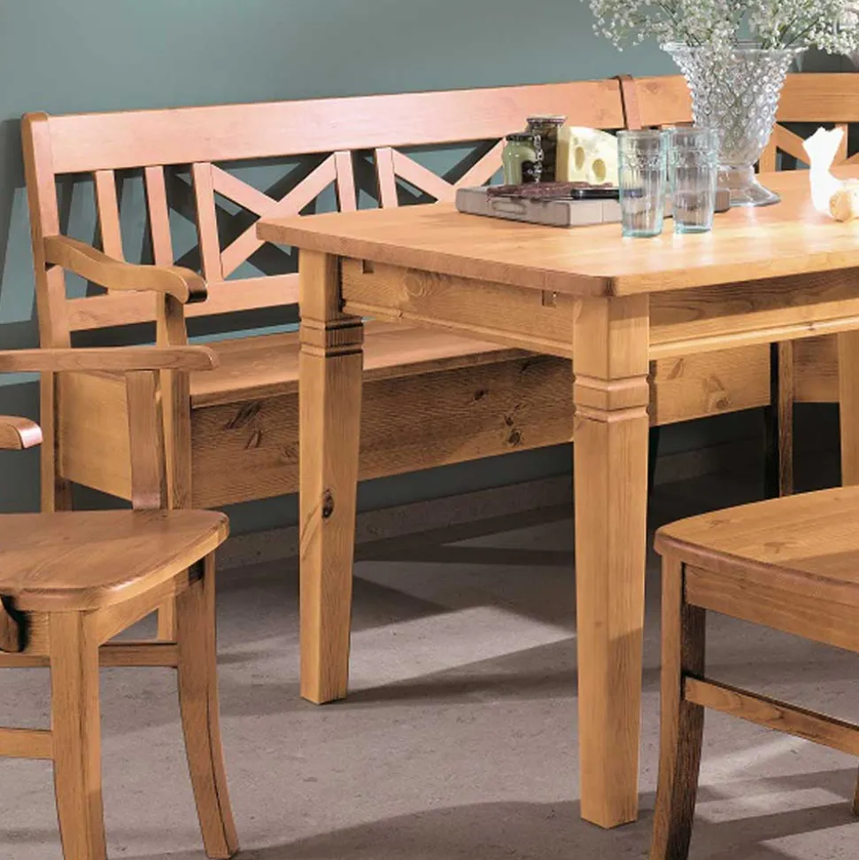 Der Tisch der „Giurgia“-Essecke ist nicht nur ein Ort zum Essen, sondern das Herzstück deines Essbereichs. Mit einer stabilen Tischplattenstärke von 3 cm und den dekorativ gefrästen Vierfußbeinen (9 x 9 cm, nach unten verjüngt auf 8 x 8 cm) ist dieser Tisch ein echter Hingucker. Die Maße von 140 x 78 x 90 cm bieten genügend Platz für Mahlzeiten, Spieleabende oder ein geselliges Beisammensein. Das massive Kiefernholz garantiert eine hohe Stabilität und Langlebigkeit, die auch bei häufigem Gebrauch Bestand hat.
