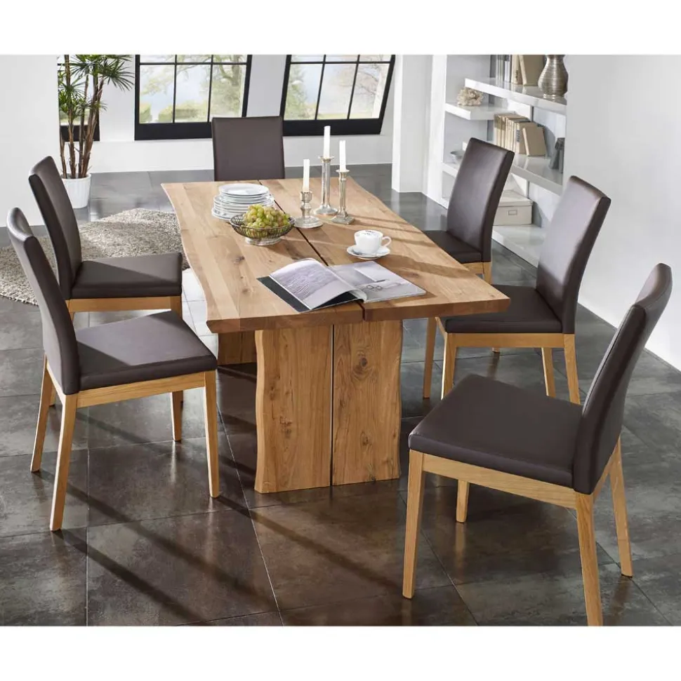 - Wildeiche Massivholz, Kunstleder (100 % Polyurethan)