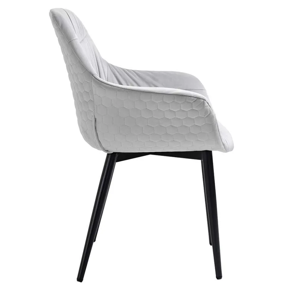 Nicht nur stilistisch, auch funktional wissen die vier Stühle zu überzeugen. Komfort entsteht durch die hochwertige Schaumstoffpolsterung, die für ein angenehmes Sitzgefühl sorgt – selbst bei langen Abenden am Tisch. Ergonomisch geformte Rückenlehnen unterstützen den Rücken optimal und sorgen für eine entspannte Haltung. Außen sorgt eine elegante Wabensteppung für einen modernen Look, während innen raffinierte Ziernähte mit legerem Faltenwurf für eine wohnliche Note stehen – kleine Details mit großer Wirkung.