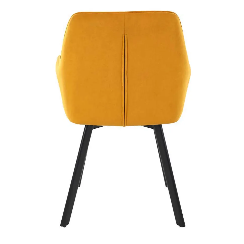 Sitzkomfort trifft Stil: Die Stühle sind mit hochwertigen, gelben Samtbezügen versehen, die aus 100 % Polyester bestehen – ein Material, das sich durch Pflegeleichtigkeit, hohe Formbeständigkeit und Farbtreue auszeichnet. Polyester überzeugt zudem durch seine Alltagstauglichkeit: Mit einer Scheuerbeständigkeit von 60.000 Scheuertouren nach Martindale sind die Bezüge extrem strapazierfähig. Gleichzeitig sorgt eine Lichtbeständigkeit von 4 auf einer Skala von 1 bis 8 dafür, dass der kräftige Gelbton auch bei regelmäßigem Lichteinfluss lange erhalten bleibt.
