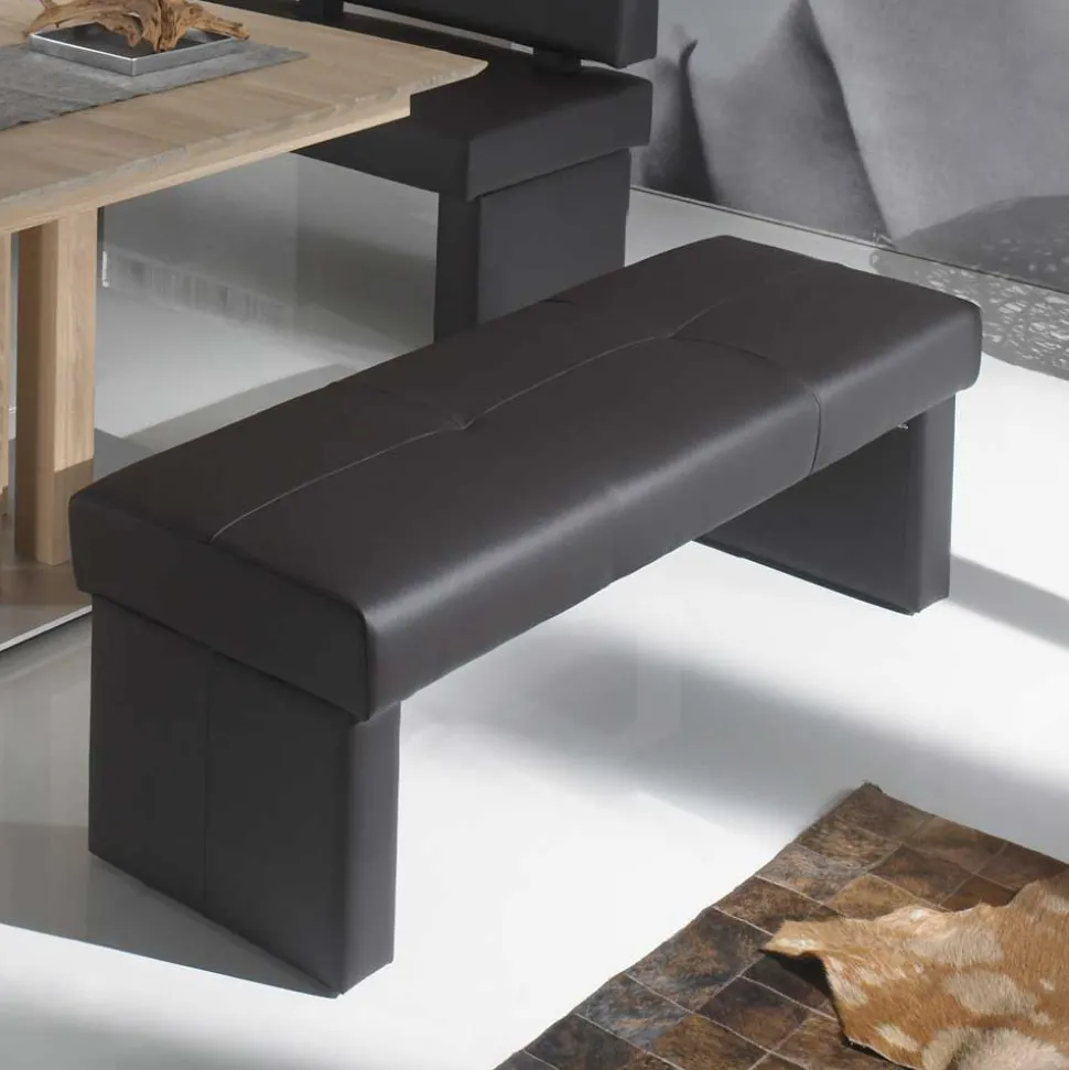 Das stabile Wangengestell sorgt für sicheren Stand und verleiht der Bank eine hochwertige, massive Ausstrahlung. Verarbeitet mit Präzision und Liebe zum Detail, hält Steve auch dem täglichen Gebrauch problemlos stand. Ein robuster Bezug aus dunkelbraunem Kunstleder (100% Polyurethan) rundet das Bild ab – angenehm weich, pflegeleicht und resistent gegenüber Flecken, Kratzern und Abnutzung. Ideal für Haushalte mit Kindern, Haustieren oder einem hohen Anspruch an langlebige Möbel.
