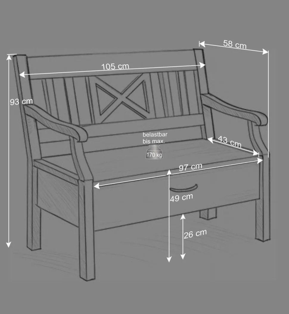 - Sitzfläche kann hochgeklappt und als Stauraum genutzt werden