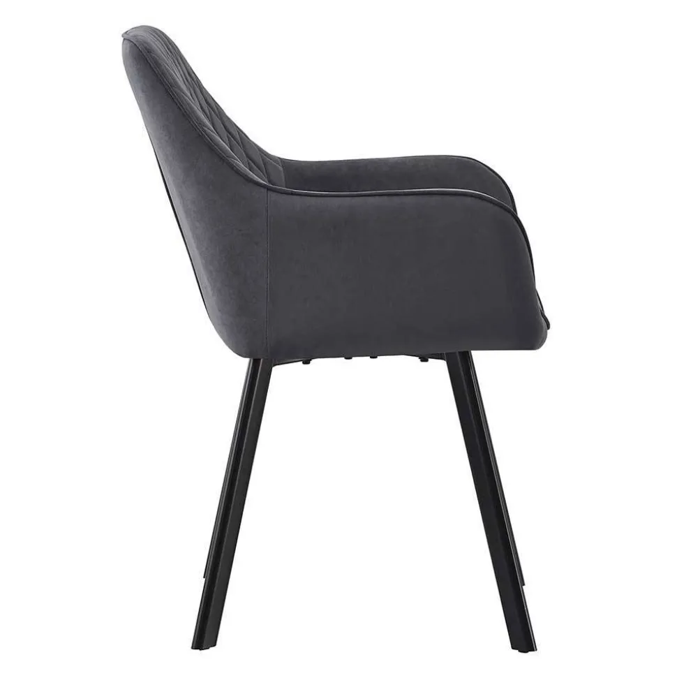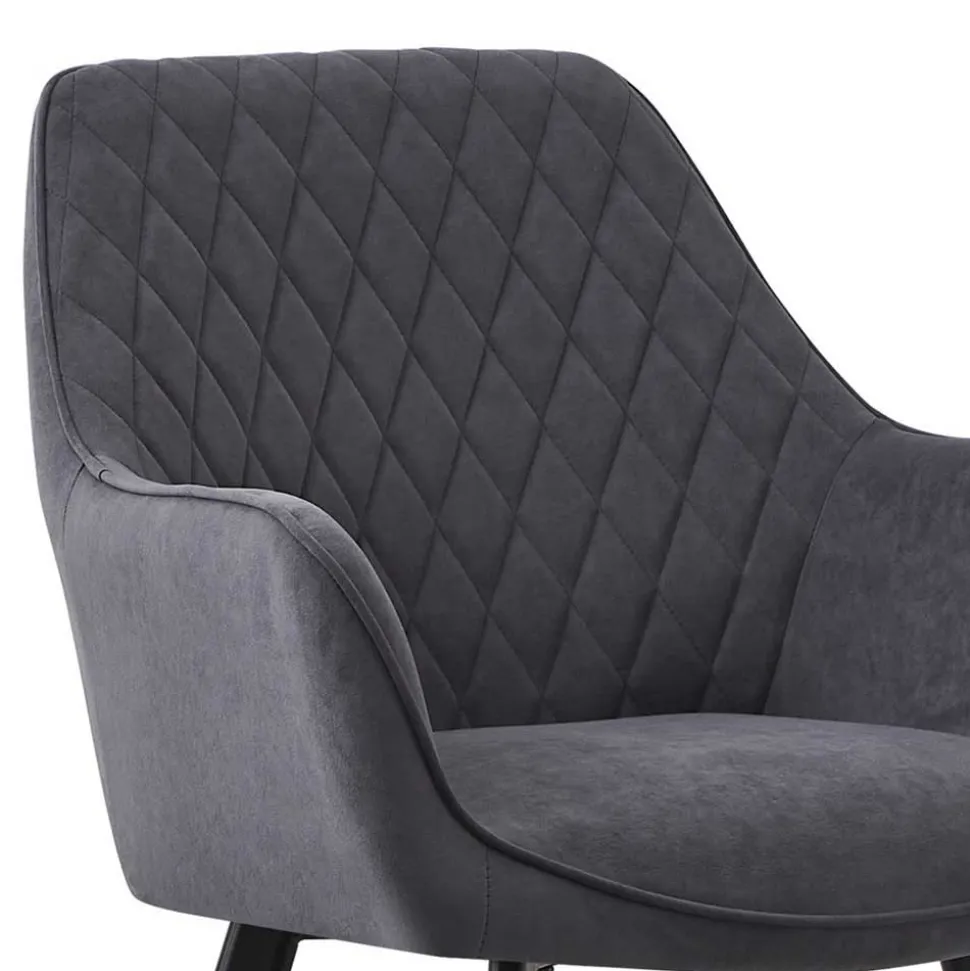 Die Rückenlehne mit attraktiver Rautensteppung misst 33,5 cm ab Sitzfläche und vereint stilvolles Design mit spürbarer Rückstütze. Leicht ausgestellte Armlehnen auf einer Höhe von 63 cm fördern eine entspannte Sitzhaltung und bieten gleichzeitig Halt und Komfort. Das abgeschrägte Vierfußgestell sorgt für außergewöhnliche Stabilität – selbst bei unebenem Boden. Jeder Stuhl ist bis zu 110 kg belastbar, was zusätzlich für die solide Qualität spricht.