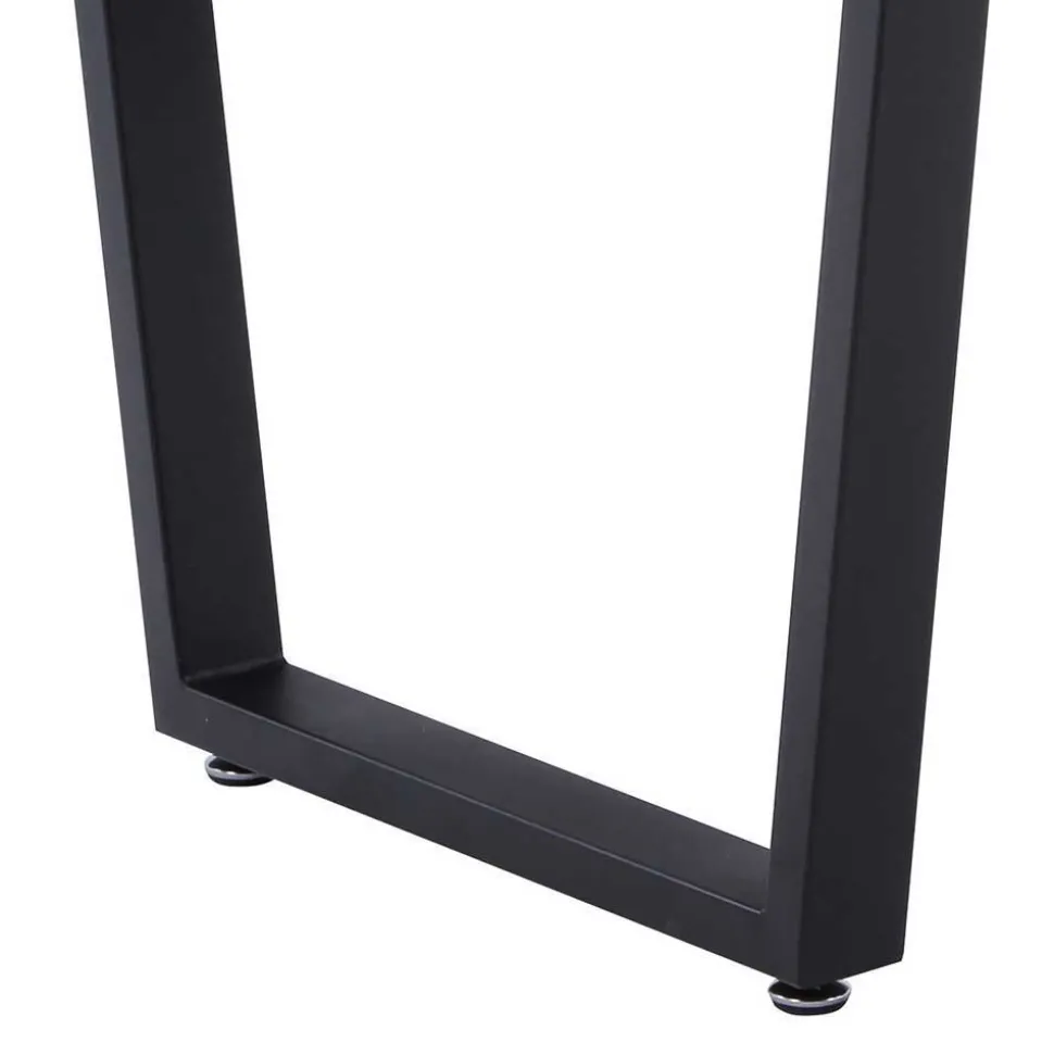 Ein solides, trapezförmiges Metallgestell mit Vierkantrohren (6×3 cm) sorgt für zuverlässige Standfestigkeit. Bodenschoner schützen empfindliche Böden und erhöhen die Langlebigkeit. Der durchdachte Abstand von ca. 13 cm zwischen Gestell und Kopfseite schafft zusätzliche Beinfreiheit und erleichtert das Platznehmen an den Stirnseiten – ein durchdachtes Detail, das den Unterschied macht.
