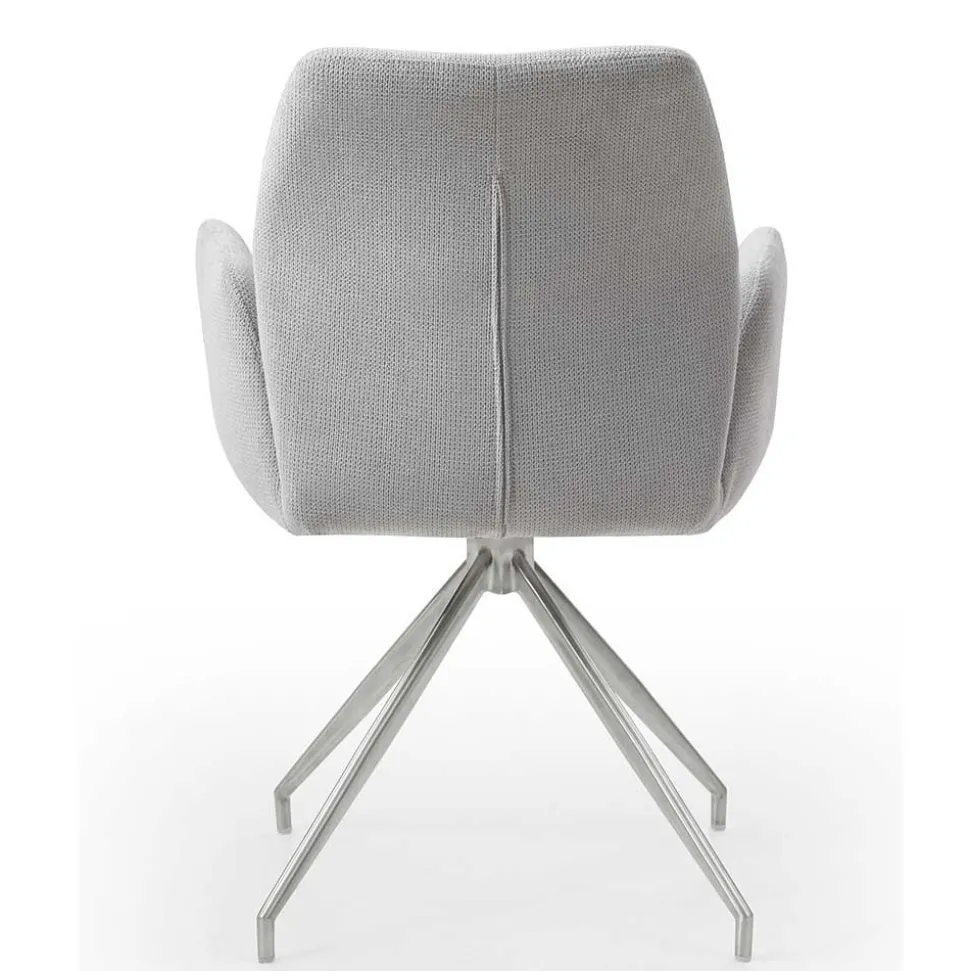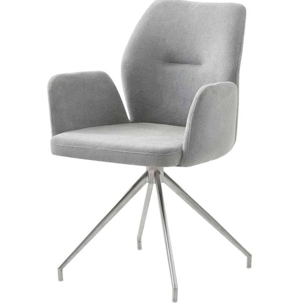 Die vier Drehstühle der Sitzgruppe „Brunion“ überzeugen durch hohen Sitzkomfort. Die ergonomisch geformten Rücken- und Armlehnen sind mit einer weichen Schaumstoffpolsterung ausgestattet und sorgen für eine angenehme Unterstützung. Der strukturierte Webstoff (100 % Polyester) ist nicht nur pflegeleicht, sondern auch besonders strapazierfähig mit einer Scheuerbeständigkeit von 50.000 Touren nach Martindale. Ein Highlight: Die Stühle sind um 180 Grad drehbar – so erleichtern sie Ihnen das Hinsetzen und Aufstehen.