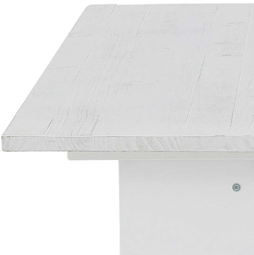 - Massivholz-Oberflächen weiß lasiert und gebürstet, fühlbare Struktur im Used Look