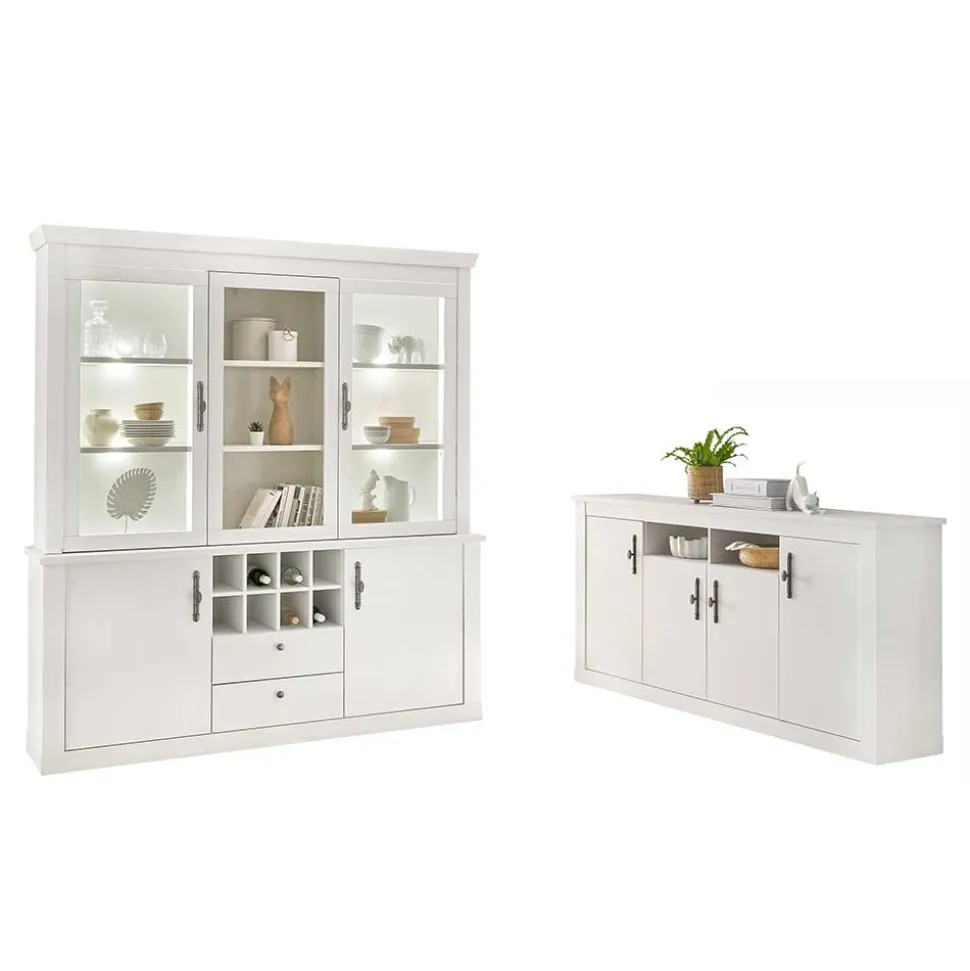 Verleihen Sie Ihrem Zuhause einen wohnlichen Charme mit dem Esszimmerschränke Set „Liancos“. Die Holzoptik in Pinie Weiß schafft eine angenehme, helle Atmosphäre, die zu einer Vielzahl von Einrichtungsstilen passt. Das zweiteilige Set, bestehend aus einer Buffetschrank-Vitrine und einem Sideboard, bietet nicht nur ästhetischen Mehrwert, sondern überzeugt auch mit funktionaler Raffinesse. Im beliebten skandinavischen Design gefertigt, fügt sich „Liancos“ nahtlos in Esszimmer, Wohnzimmer oder geräumige Küchen ein und schafft dabei eine perfekte Kombination aus Stil und Stauraum.