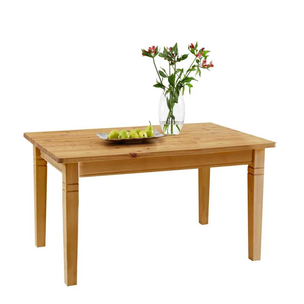 Gefertigt aus nordischem, massivem Kiefernholz, überzeugt der Esszimmertisch „Giurgia“ mit einer außergewöhnlichen Materialqualität. Kiefernholz ist nicht nur für seine Robustheit bekannt, sondern auch für seine natürliche Maserung, die jedem Möbelstück einen individuellen Charakter verleiht. Die Oberfläche des Tisches wurde laugenfarbig geölt und gebeizt, was das Holz schützt und ihm zugleich einen unverwechselbaren, warmen Farbton verleiht. Diese spezielle Behandlung bewahrt das Holz vor alltäglichen Beanspruchungen und sorgt dafür, dass der Tisch auch nach vielen Jahren noch in voller Schönheit erstrahlt. Die geölte und gebeizte Oberfläche lässt sich zudem leicht pflegen – einfach mit einem weichen Tuch abwischen, und der Tisch bleibt immer in Bestform.