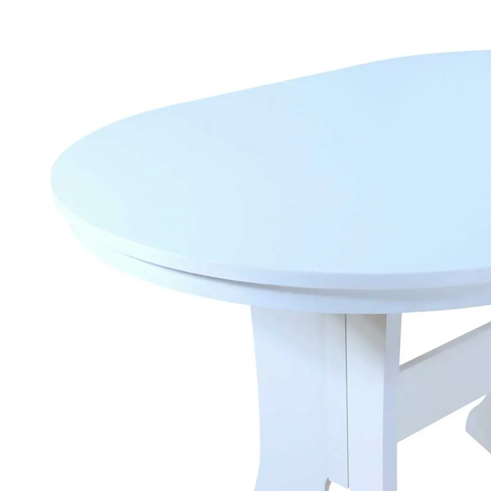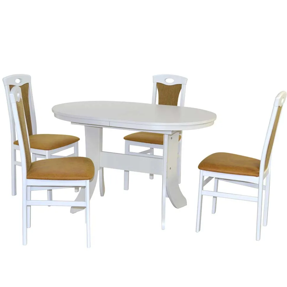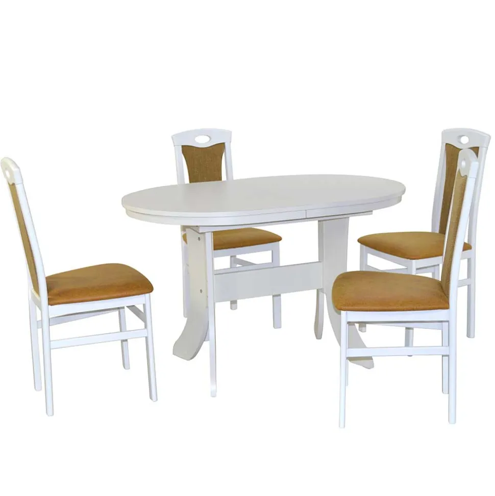 Gefertigt aus massiver Buche, bieten Tisch- und Stuhlgestelle die perfekte Grundlage für ein langlebiges Möbelstück. Buche gehört zu den härtesten heimischen Holzarten, bekannt für Stabilität und Widerstandsfähigkeit. Die Oberflächen wurden sorgfältig weiß lackiert. Bei der Lackierung wird ein deckender Schutzfilm aufgetragen, der nicht nur vor Feuchtigkeit und Abnutzung schützt, sondern auch eine elegante, glatte Optik erzeugt.