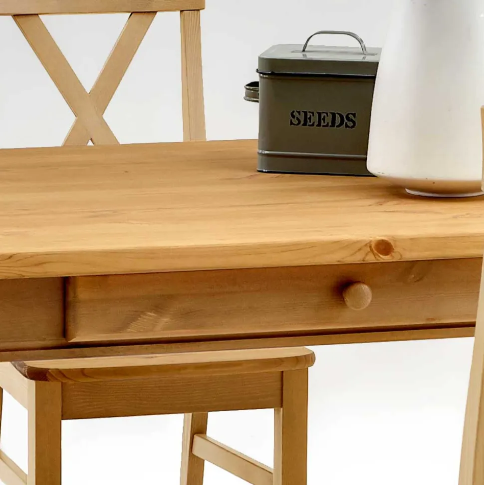 Der Esstisch „Piatra“ wird aus massivem Kiefernholz und hochwertigem Sperrholz hergestellt. Kiefernholz zeichnet sich durch seine Festigkeit und Langlebigkeit aus, während seine einzigartige Maserung und sichtbare Äste den stilvollen Charakter des Tisches unterstreichen. Diese Eigenschaften sorgen für ein langlebiges und robustes Möbelstück, das Sie über viele Jahre begleiten wird.