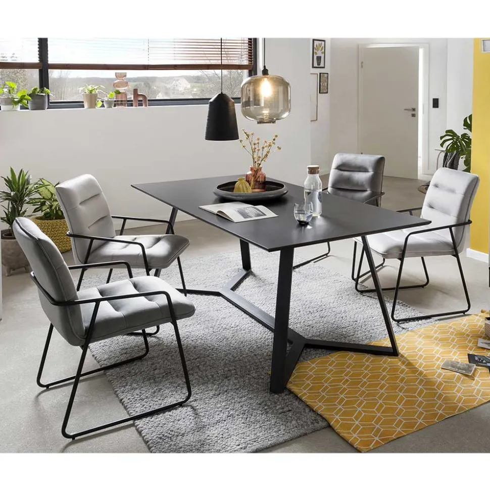 Vier komfortable Stühle und ein großzügiger Tisch vereinen sich bei der Sitzgruppe „Faustro“ zu einem stilvollen Ensemble, das modernes Wohnen neu definiert. In Grautönen gehalten – hellgrau, dunkelgrau, anthrazit und mattschwarz – entsteht ein harmonisches Farbspiel, das sich mühelos in verschiedenste Einrichtungsstile einfügt. Besonders Liebhaber des angesagten Industry- und Loft-Stils kommen hier voll auf ihre Kosten.