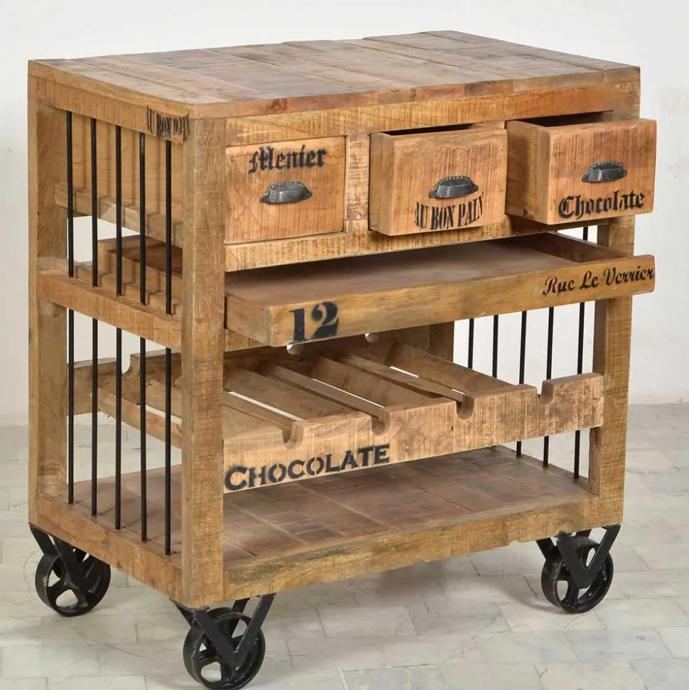 - Erstklassiger Servierwagen in Mangoholz Naturfarben