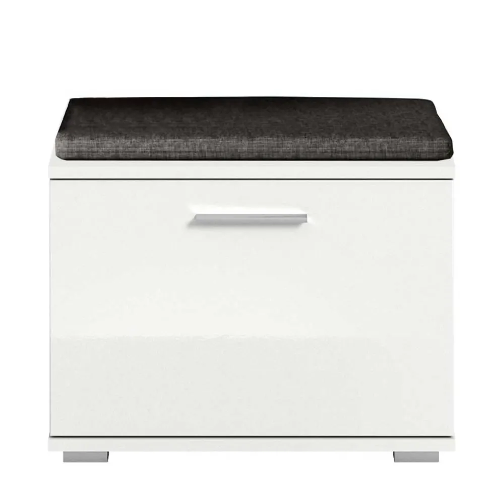 Auch die Front glänzt mit Funktion und Ästhetik: Die spezielle Hochglanzfolie verleiht der Rillenoptik Tiefe und Dimension, sodass die Garderobenbank zum stilvollen Hingucker wird. Langlebige Metallbeschläge sorgen dafür, dass die Klappe selbst nach jahrelangem Gebrauch einwandfrei funktioniert, und die silberfarbige Griffleiste rundet das Design harmonisch ab. Diese durchdachte Materialwahl macht die „Rugova“ zur perfekten Kombination aus Eleganz und Robustheit.