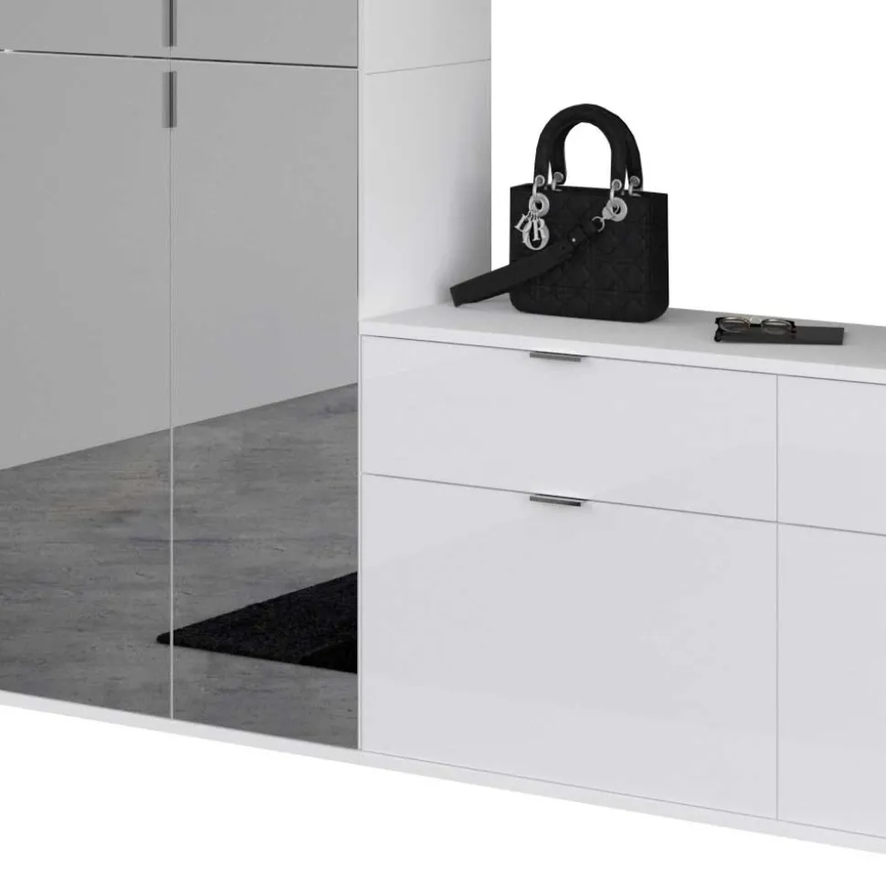 „Modernes Design“ bedeutet bei der Serie Ejulia klare Linien, reduzierte Formen und eine harmonische Verbindung aus Funktion und Ästhetik. Die Kombination aus hochglänzendem Weiß, dezenten Chrom-Metallgriffen und hochwertigen Materialien sorgt für eine stilvolle und gleichzeitig zeitlose Optik. Besonders in hellen Räumen reflektieren die Spiegelelemente das Licht und lassen Ihren Flur größer und einladender wirken.