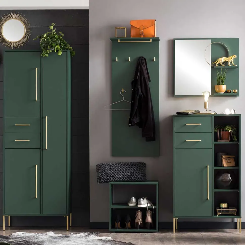 - Klasse Garderobenmöbel in Dunkelgrün und Goldfarben