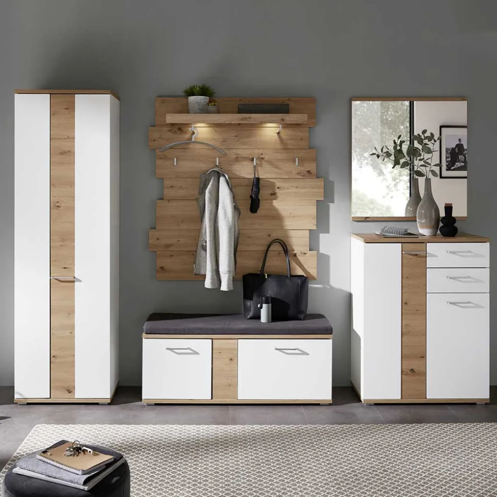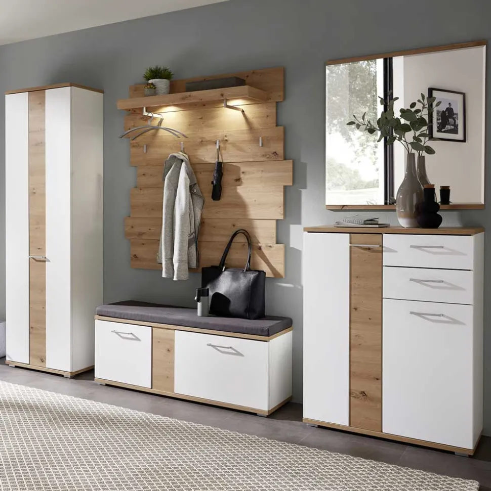 Flurmöbel Set in Weiß & Wildeiche – Symbrosia (fünfteilig)