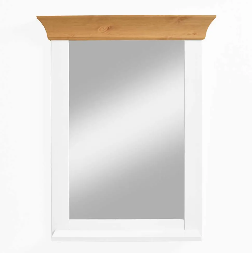 Der Spiegel mit stabilen Holzrahmen und gefräster Zierleiste verleiht dem Set einen zusätzlichen Hauch von Eleganz. Mit einer praktischen Ablage unten bietet er nicht nur ein Abbild Ihrer Schönheit, sondern auch zusätzlichen Nutzen im Alltag.