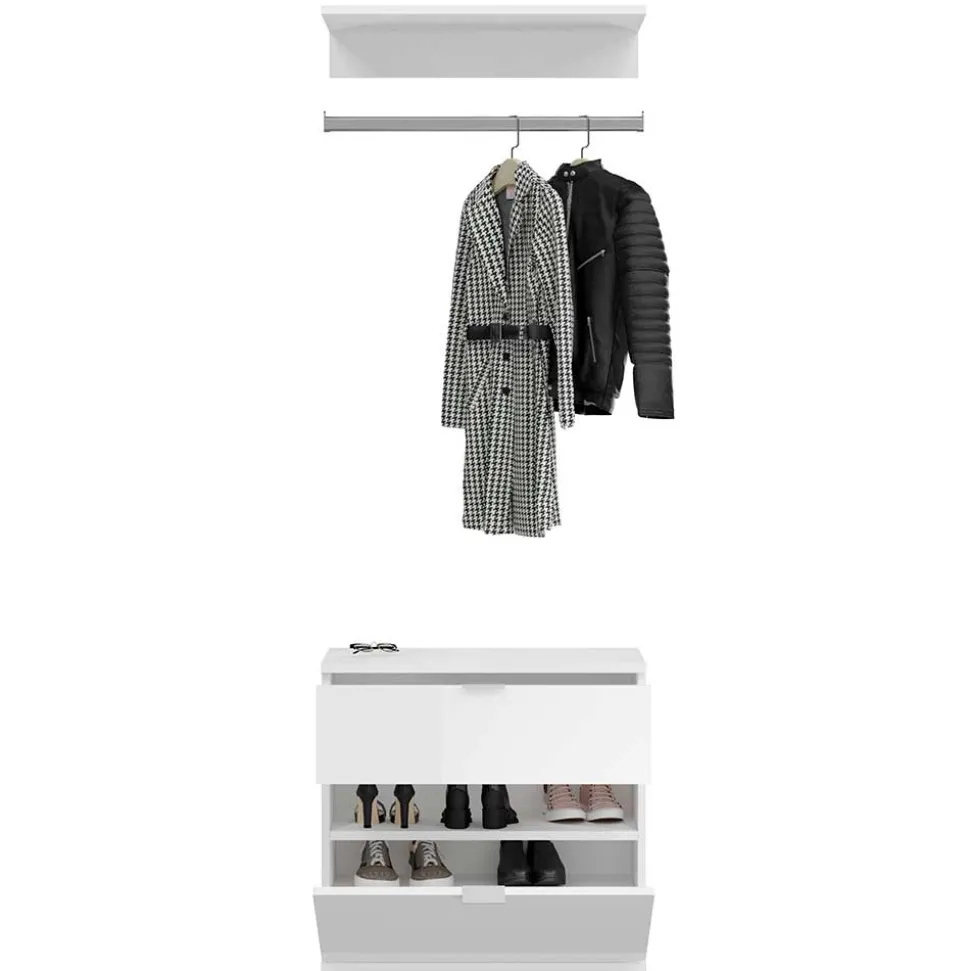 Das moderne Design dieses Sets überzeugt durch klare Linien, minimalistische Formen und hochwertige Verarbeitung. Es ist ideal für alle, die schlichte Eleganz und Funktionalität schätzen. Dank der hochglänzenden weißen Oberfläche strahlt der Garderoben-Block „Ejulia“ eine zeitlose Frische aus und passt sich nahtlos in nahezu jede Wohnumgebung ein.
