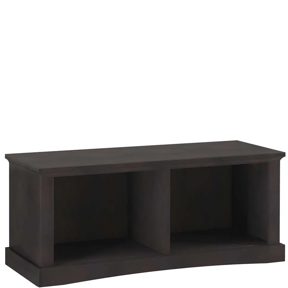 Das leicht ausgeschnittene Sockelgestell verleiht der Bank eine elegante Leichtigkeit, während die großzügige Sitzfläche mit einer Breite von 110 cm für angenehmen Komfort sorgt. Die Innenmaße der Fächer sind optimal auf die Unterbringung verschiedener Gegenstände abgestimmt.