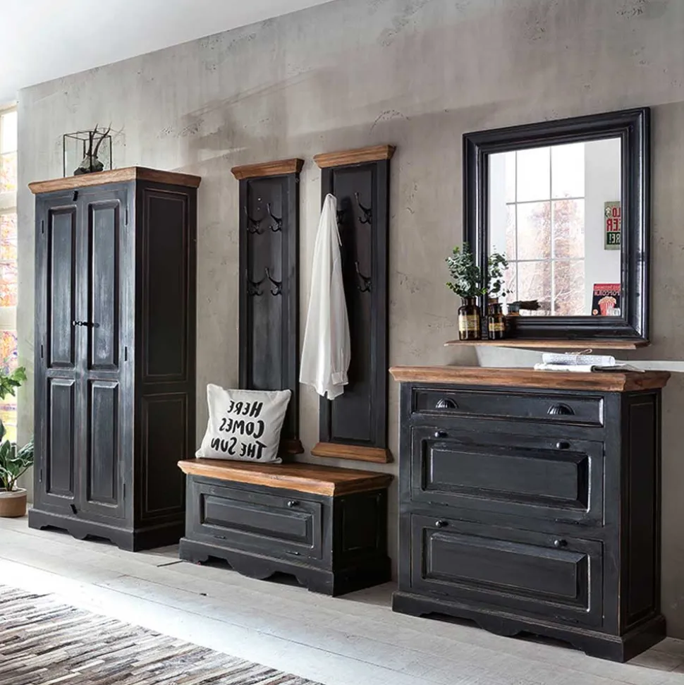- Angesagtes Garderoben-Set in Schwarz, Oberplatte in Honigfarben abgesetzt