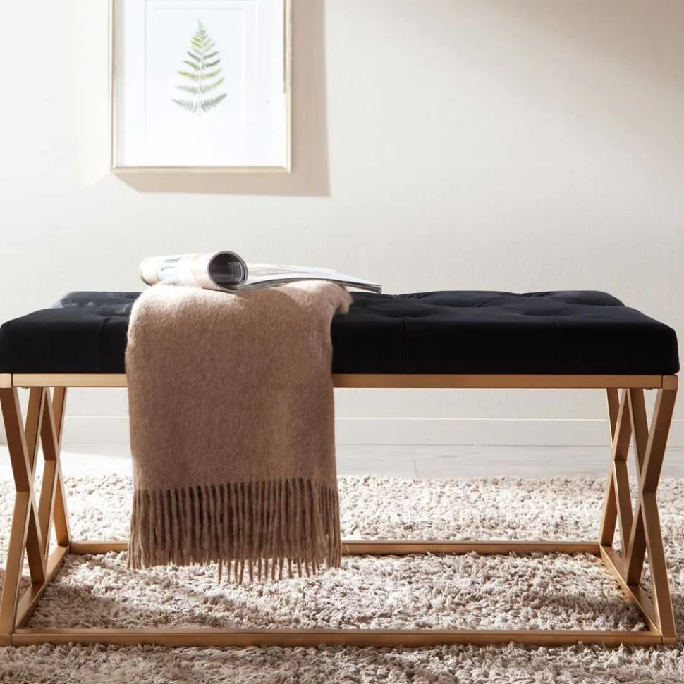 - Stilvolle Polsterbank in Schwarz und Goldfarben