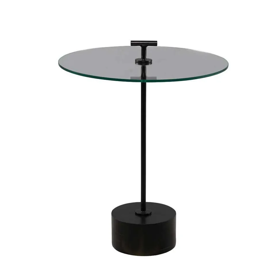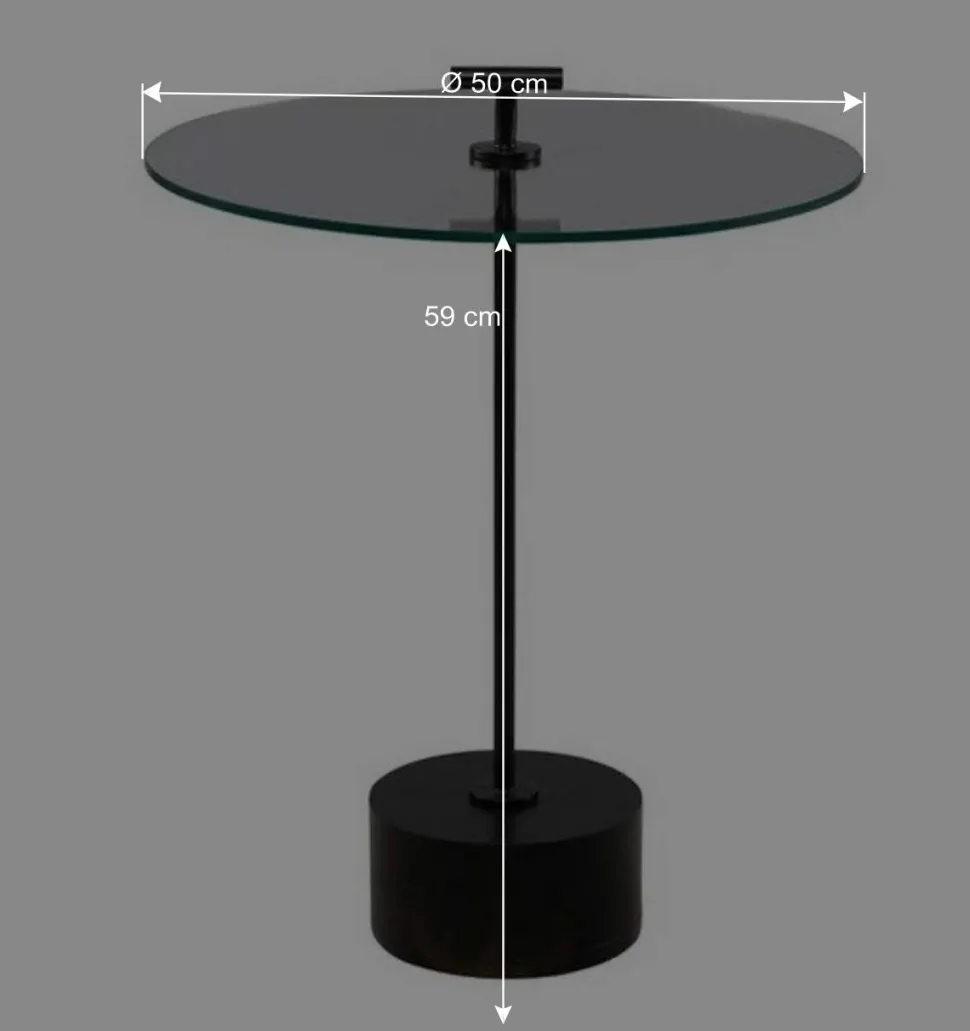 Das schwarze Säulengestell aus Metall verleiht dem Tisch eine moderne Silhouette, während der Sockel aus schwarz lackiertem Akazienholz den natürlichen Charakter unterstreicht. Die elegante runde Form und die strapazierfähigen Oberflächen lassen den Beistelltisch nicht nur edel wirken, sondern machen ihn auch pflegeleicht im täglichen Gebrauch.