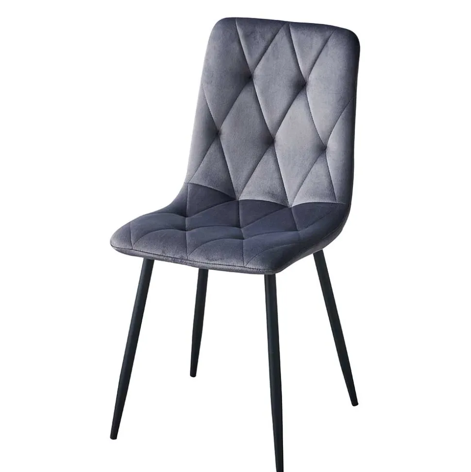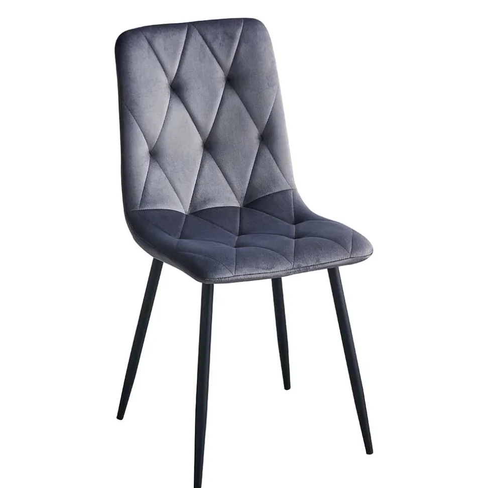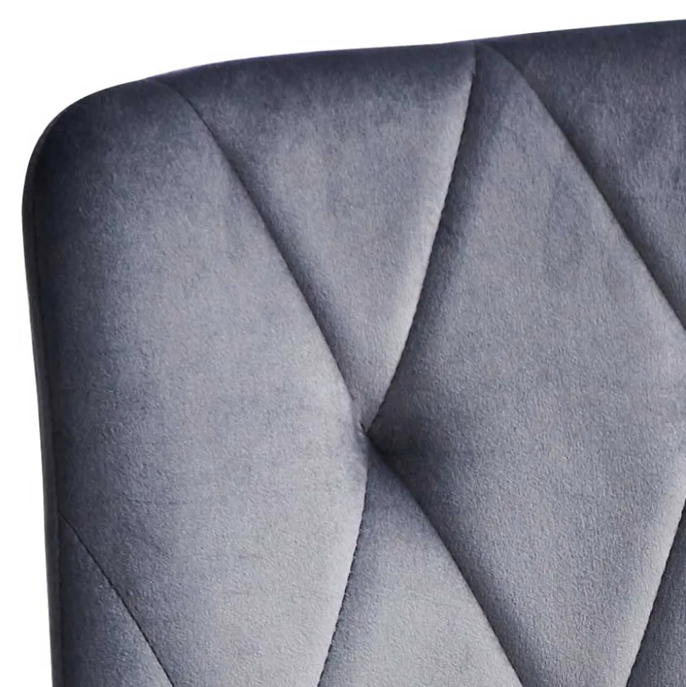 Das pulverbeschichtete Vierfußgestell aus Metall in elegantem Schwarz sorgt für hohe Stabilität und bildet einen stilvollen Kontrast zum grauen Samtbezug. Bodenschoner schützen Ihre Böden zuverlässig und machen den Stuhl auch für empfindliche Untergründe geeignet. Bis zu 120 kg Belastbarkeit garantieren dabei Sicherheit im täglichen Gebrauch.