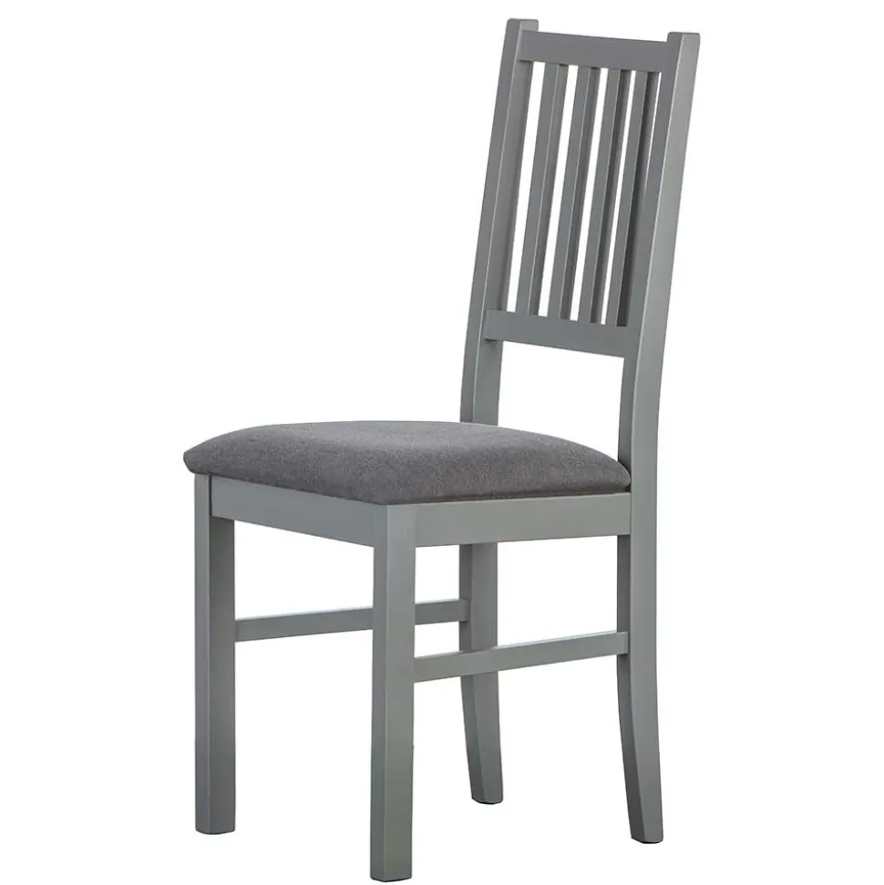Die vollständige graue Lackierung des Buchenholzes schützt nicht nur die Oberfläche, sondern verleiht dem Stuhl auch ein modernes und ansprechendes Aussehen. Diese Veredelung unterstreicht die hochwertige Verarbeitungsqualität und sorgt für eine einfache Reinigung sowie für eine zusätzliche Schicht des Schutzes gegen alltägliche Abnutzung.