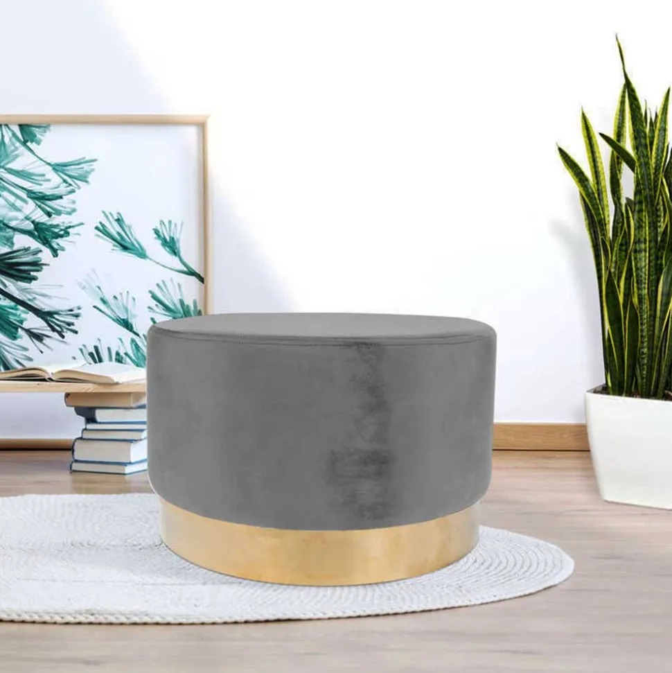 - Dezenter Hocker in Grau und Goldfarben