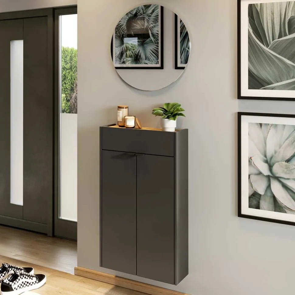 - Praktische Garderobenmöbel in Dunkelgrau und Wildeichefarben