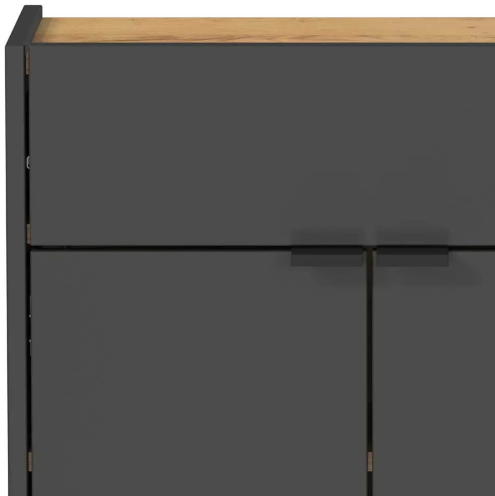 Ein modernes Zuhause verlangt nach Möbeln, die nicht nur praktisch, sondern auch optisch ansprechend sind. Die Garderobenmöbel „Sidgarus“ kombinieren eine elegante dunkelgraue Farbgebung mit einer warmen Wildeiche-Optik – eine zeitlose Kombination, die sich mühelos in jedes Ambiente einfügt. Die schlichte Formensprache sorgt für eine moderne Ausstrahlung, während die durchdachte Konstruktion maximale Funktionalität bietet.