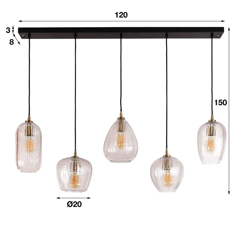 - Lieferung ohne Leuchtmittel, fünf Fassungen E27, Schutzart IP20
