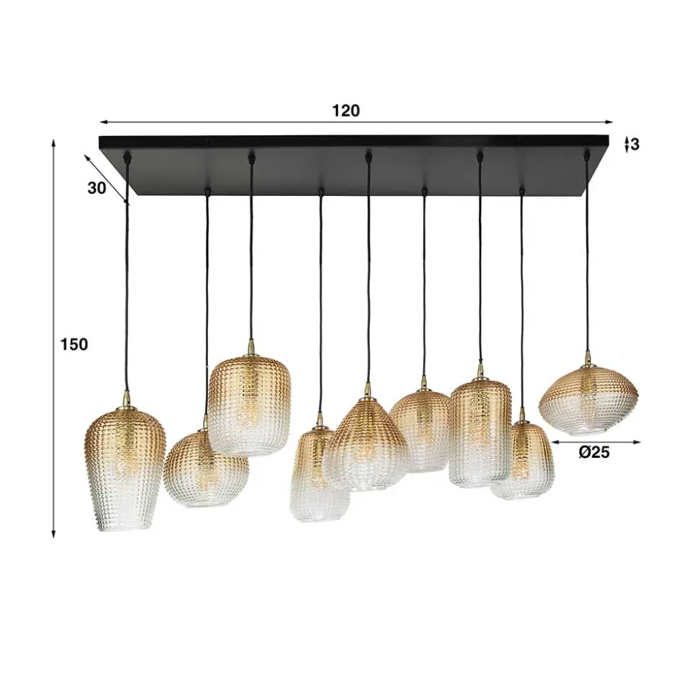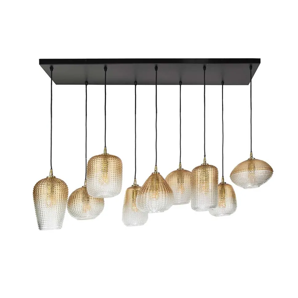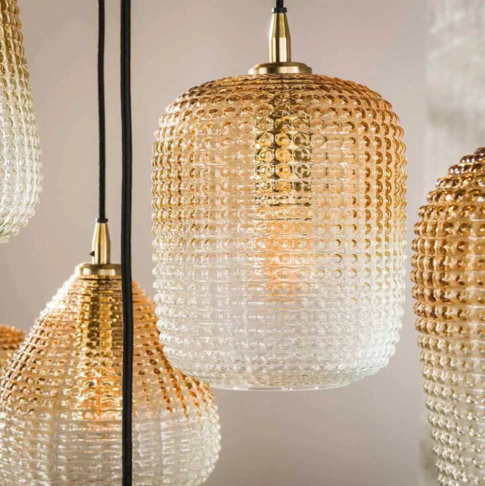 - Eleganter Farbverlauf der Lampenschirme von bernsteinfarbig zu transparent