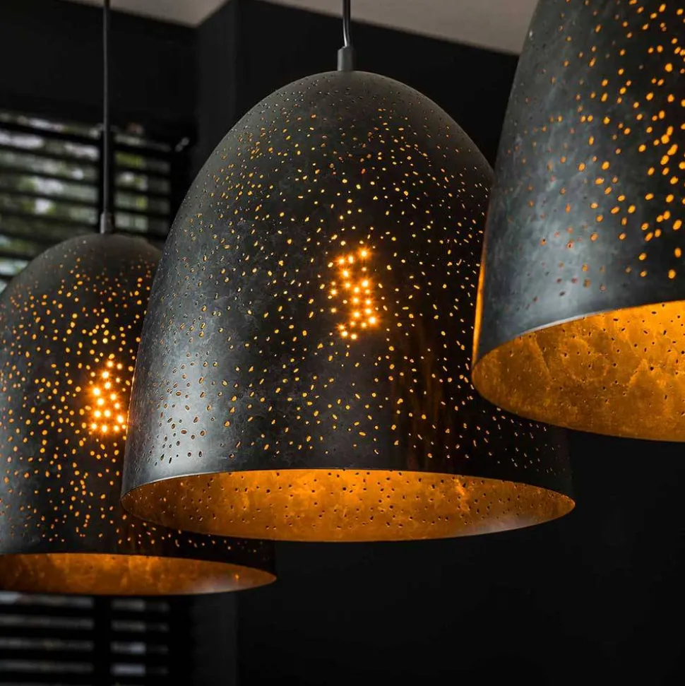Ein besonderes Highlight bildet das kunstvoll gearbeitete Lochmuster, das im eingeschalteten Zustand ein beeindruckendes Spiel aus Licht und Schatten an Ihre Wände zaubert. Der Raum erhält dadurch eine emotionale Tiefe, die Wärme, Behaglichkeit und moderne Coolness perfekt verbindet. Diese Leuchte schafft Stimmung – und zwar jeden Abend aufs Neue.