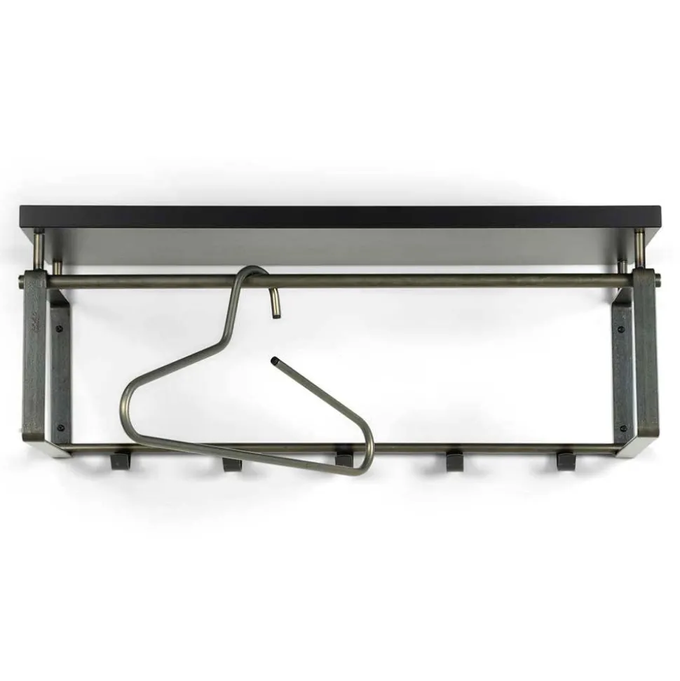 - Ausgestattet mit fünf gebogenen Kleiderhaken, zudem bieten zwei Stangen seitlich und eine Stange unter der Hutablage Platz für Kleiderbügel