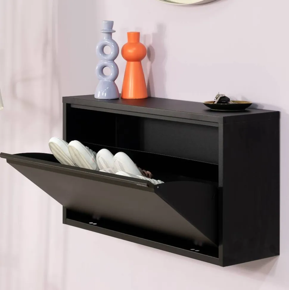 - Elegant und zeitlos präsentiert sich dieser Schuhschrank in klassischem Schwarz