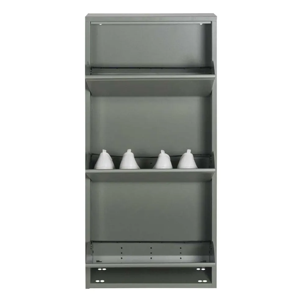 Gefertigt aus stabilem Stahl bringt Bombasti nicht nur ein modernes Industrie-Flair in Ihr Zuhause, sondern überzeugt auch mit inneren Werten: Stahl ist besonders widerstandsfähig, formstabil und unempfindlich gegenüber Feuchtigkeit – ein Material, das für den Dauereinsatz gemacht ist. Die hochwertig pulverbeschichtete Oberfläche in Graugrün sorgt zusätzlich dafür, dass der Schrank kratz- und stoßfest bleibt, selbst bei täglichem Gebrauch. Diese Beschichtung ist nicht nur strapazierfähig, sondern verleiht dem Möbelstück auch seine edle, matte Anmutung, die sich harmonisch in moderne Wohnkonzepte einfügt.