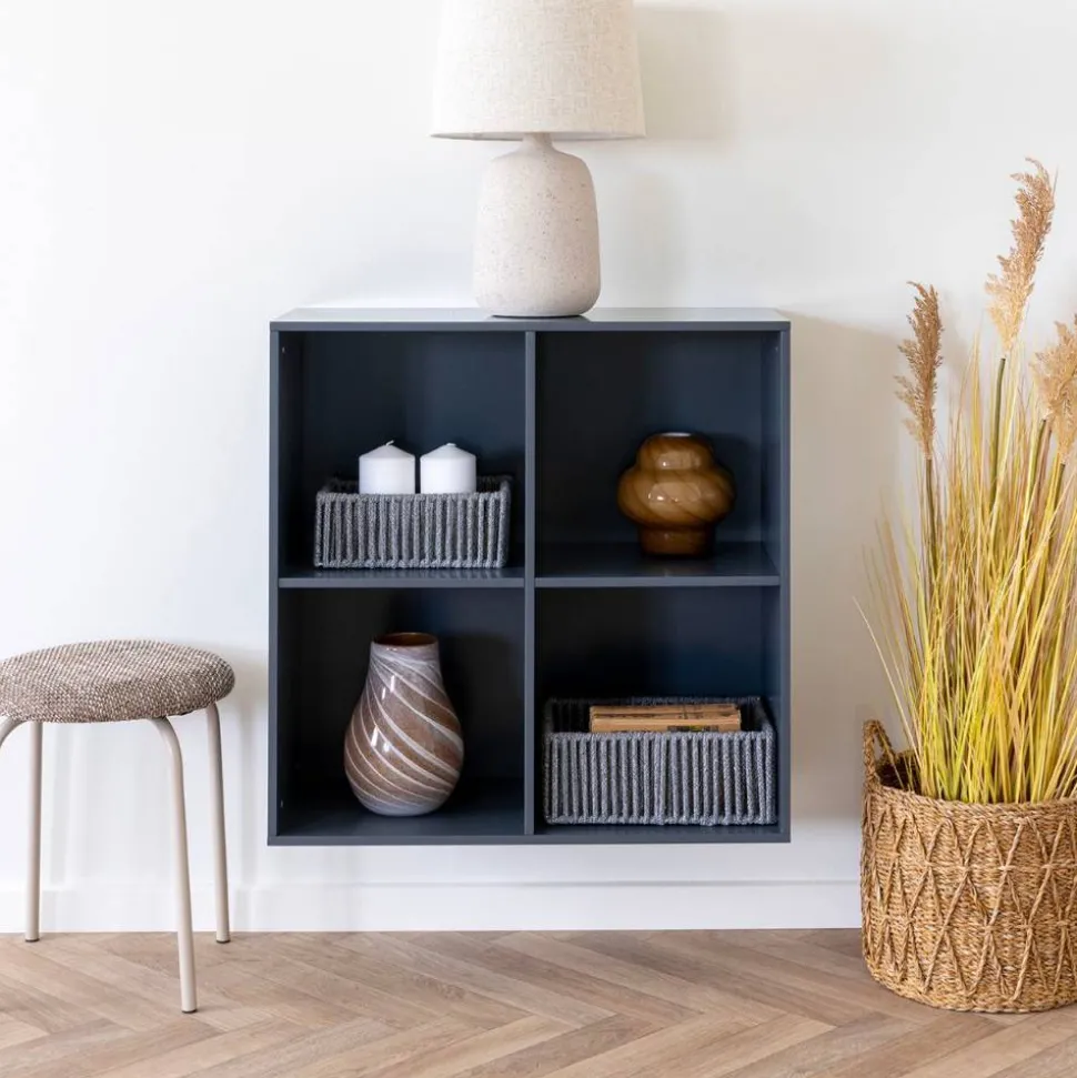 Schlicht, aber keineswegs langweilig: Das Hängeregal „Veracruz“ überzeugt durch sein quadratisches Grunddesign und eine edle Farbgebung in dunklem Grau. Damit fügt es sich mühelos in unterschiedlichste Wohnstile ein – ob als stilvoller Stauraum im Wohnzimmer, praktische Ablage im Arbeitszimmer oder dekorativer Blickfang im Flur.