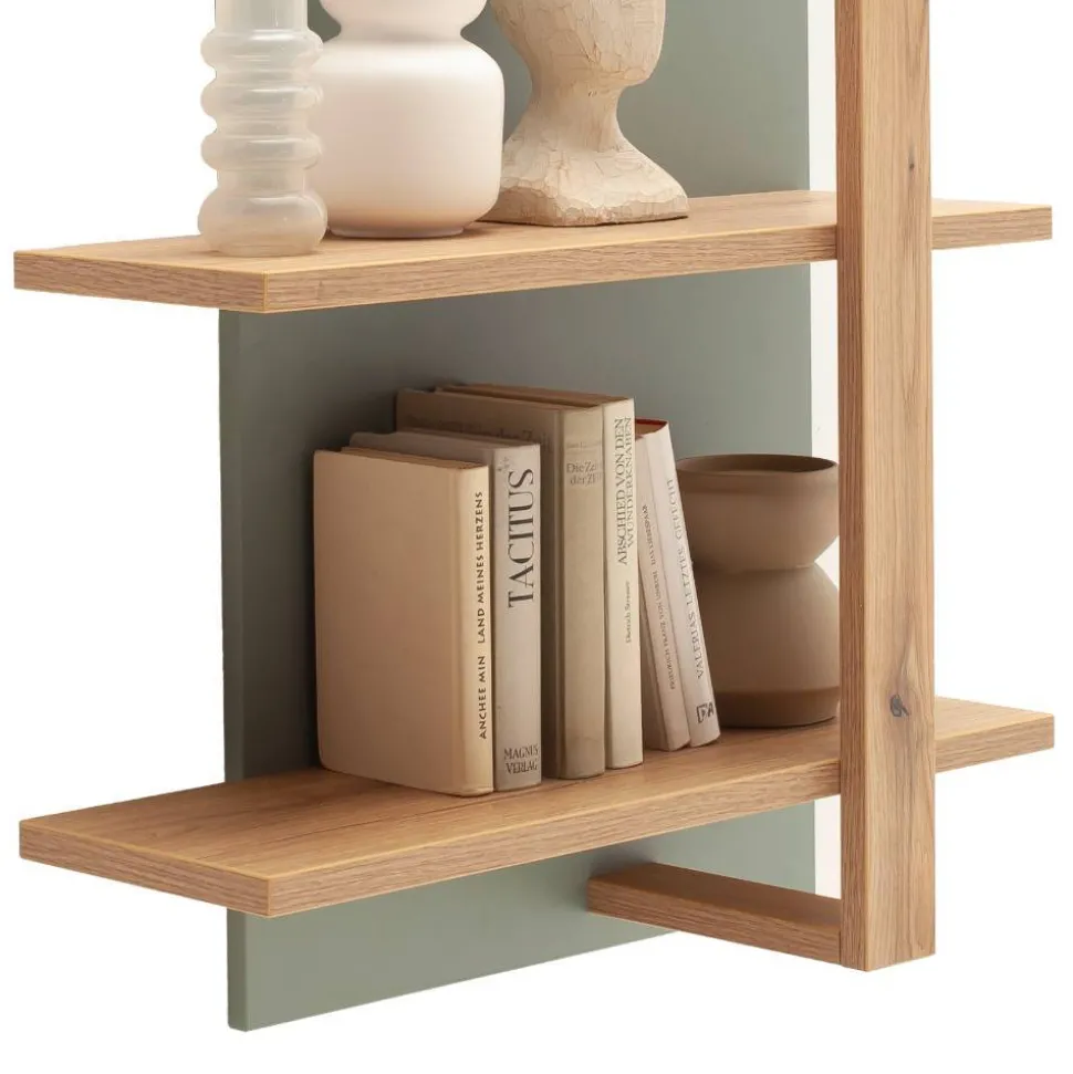 - Junges Wandregal in Graugrün und Eichefarben