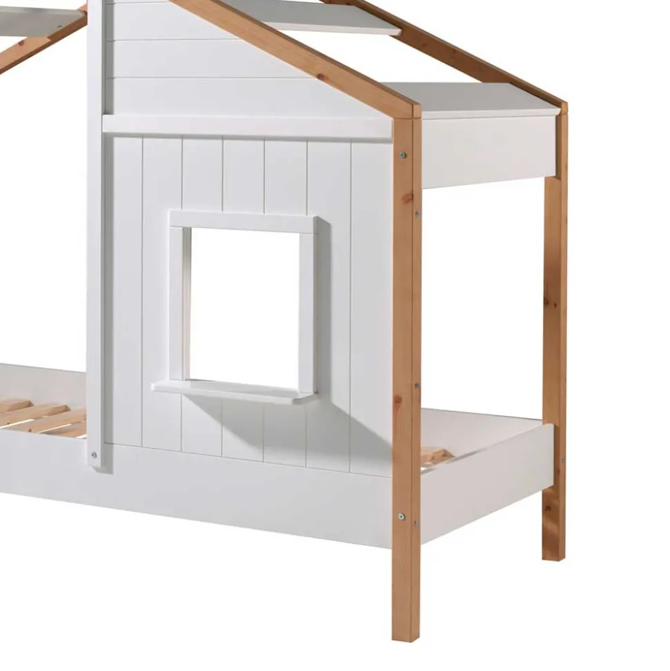 - Halboffenes Hausbett in Eichefarben und Weiß