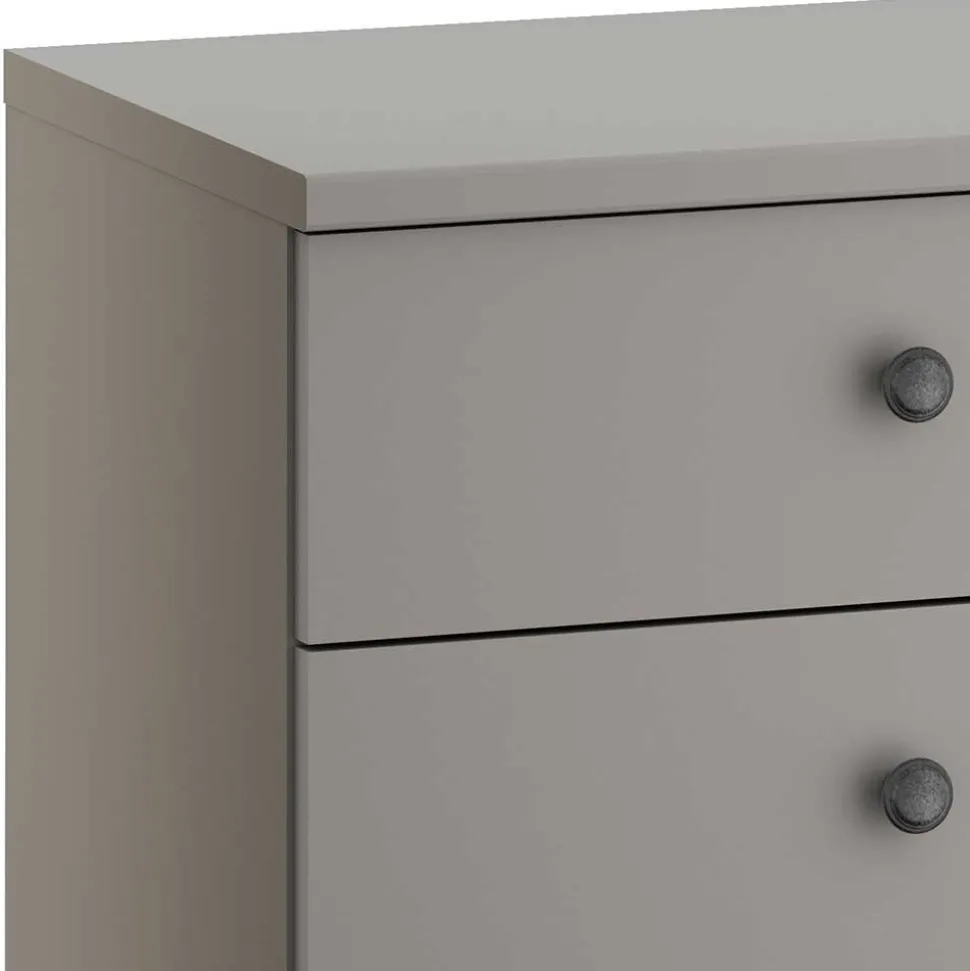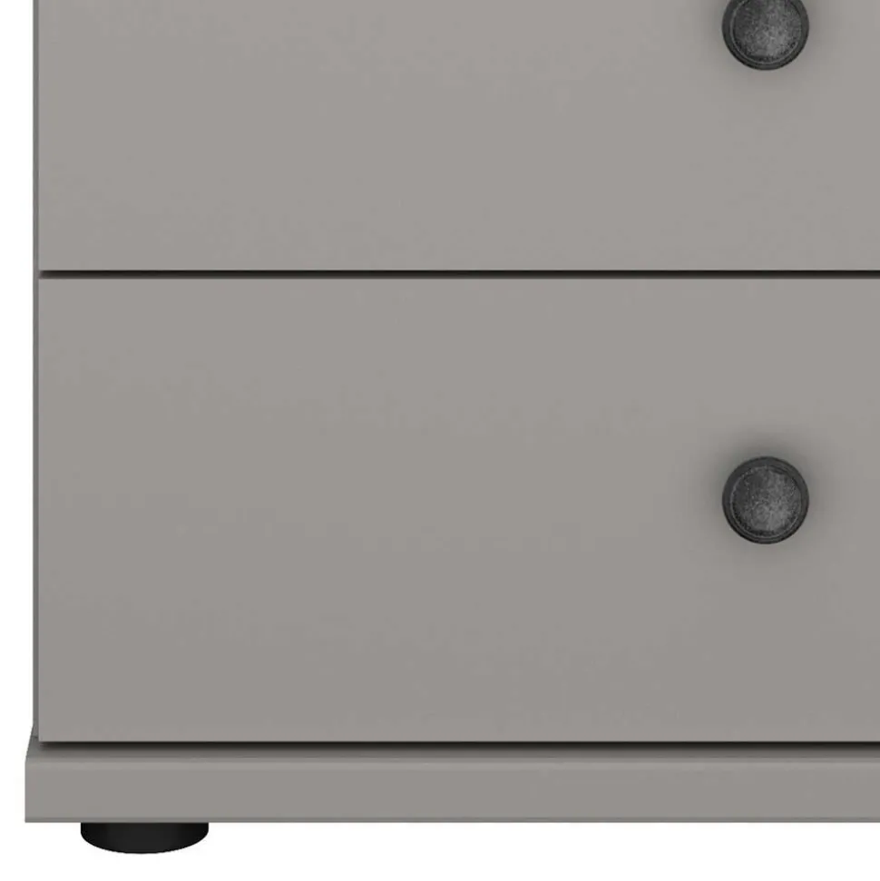 Das edle Hellgrau der Kommode ist nicht nur ein echter Hingucker, sondern dank der pflegeleichten Folierung auch besonders unkompliziert in der Pflege. Dies bedeutet, dass die Oberflächen durch eine spezielle Folie geschützt sind, die nicht nur für eine gleichmäßige Farbgebung sorgt, sondern auch leicht zu reinigen ist. Zudem passt die neutrale Farbgebung zu nahezu jedem Interieur und lässt sich problemlos mit anderen Farbtönen kombinieren.