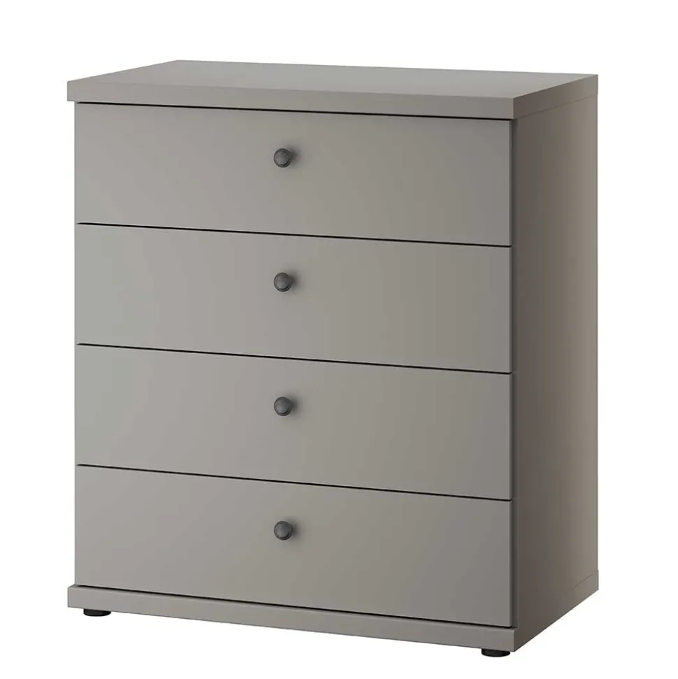 Mit einer Breite von 75 cm, einer Höhe von 86 cm und einer Tiefe von 42 cm bietet die Kommode „Ridonna“ reichlich Stauraum. Die vier geräumigen Schubladen sind mit einem Metallauszug ausgestattet, der ein leichtgängiges und komfortables Öffnen und Schließen gewährleistet. Abgerundet wird das Design durch dezente Knopfgriffe aus Metall in Altsilberfarben, die nicht nur eine edle Optik bieten, sondern auch haptisch überzeugen.