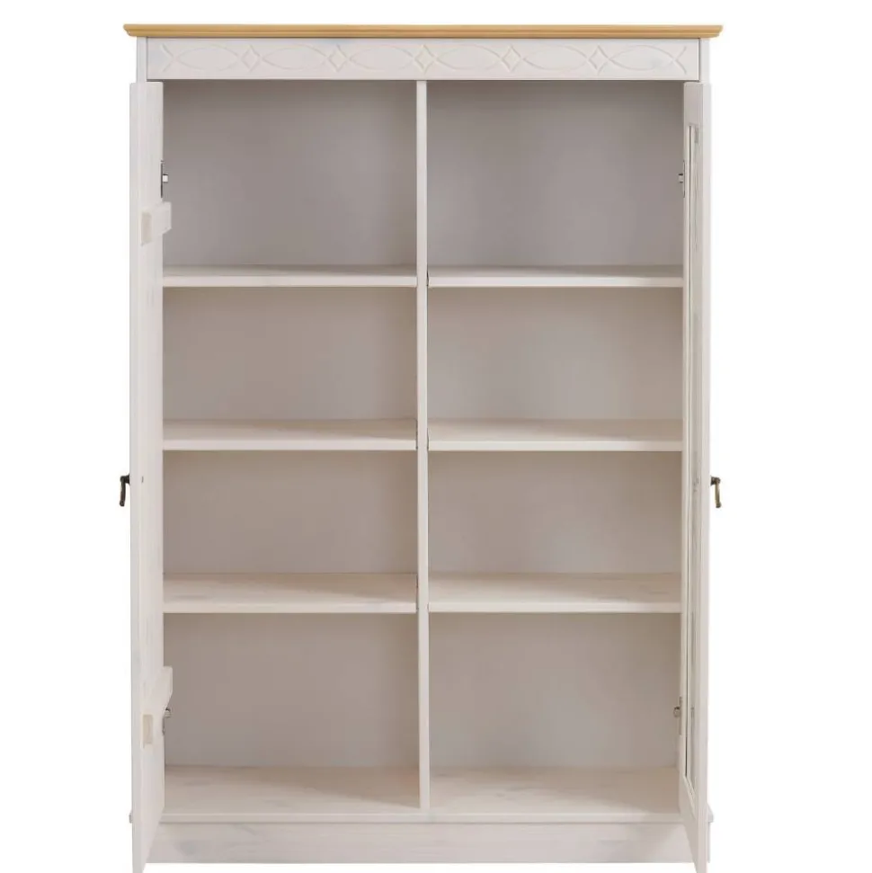 Highboard Vitrine in Weiß und Kiefer Honig - Zentra